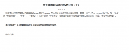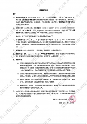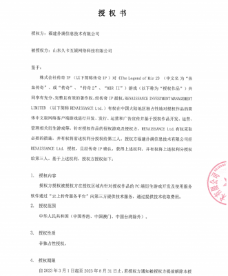 202303-06我司于2022年08月24日授权域名www.2727cq.com 在中国大陆地区范围内提供运营、管理、推广《The Legend O...
